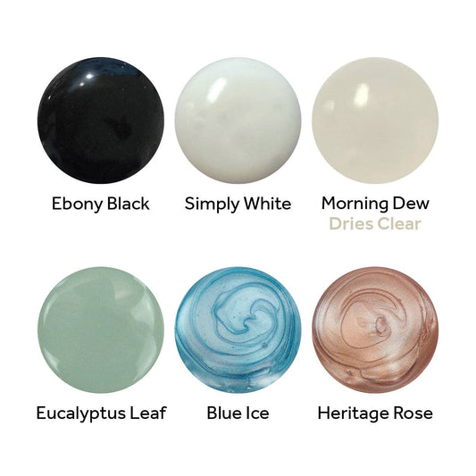 Nuvo Crystal Drops – 6-Colour Bundle (Blue Ice, Heritage Rose, Eucalyptus Leaf, Ebony Black, Gloss Simply White, Morning Dew)