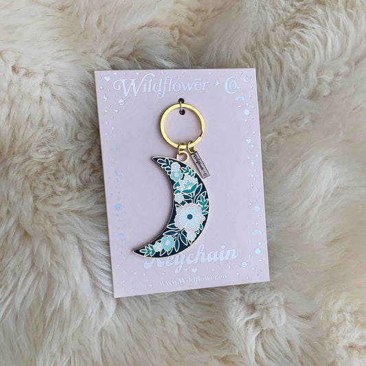 Botanical Moon Enamel Keychain